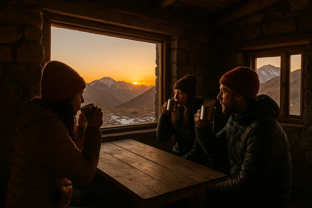 Podrás elegir entre refugio o carpa. El refugio de montaña tiene comodidades básicas, pero es rústico y las habitaciones y baños son compartidos. Si decides dormir en carpa, será en un entorno 100% agreste, sin infraestructura. Asegúrate de traer tu bolsa de dormir y, si acampas, también una colchoneta aislante.